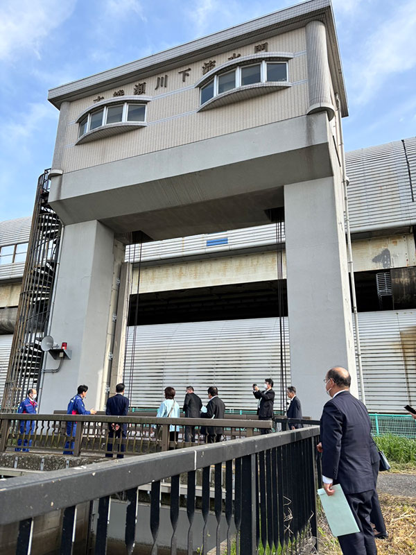 石井常任顧問の提案により、治水対策の要である排水機場のポンプの増強の経過確認の為の草加・八潮市議団合同視察が行われました。併せて、綾瀬川の水門も視察。より具体的な状況把握が出来ました。