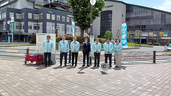 本日は、獨協大学前駅西口において、挨拶をさせていただきました。