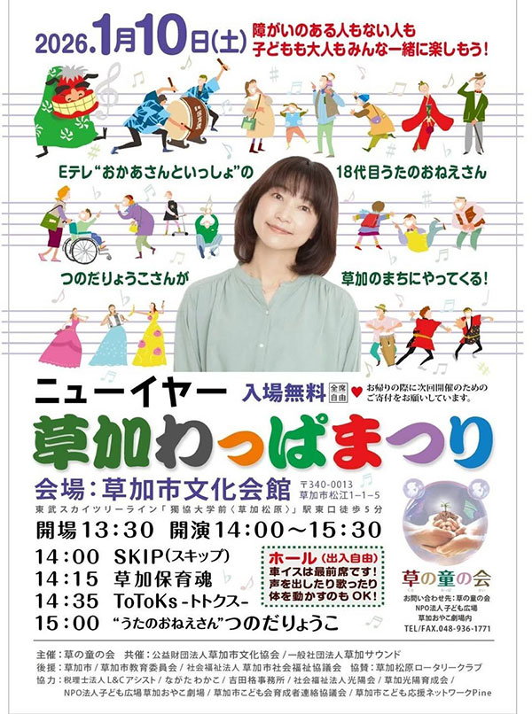 主催はいつもお世話になっている、NPO法人子ども広場草加おやこ劇場。