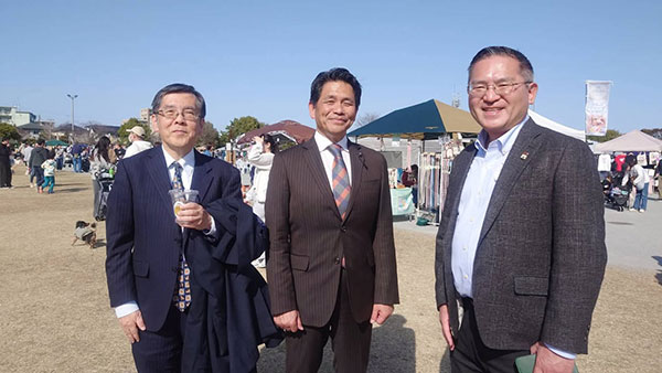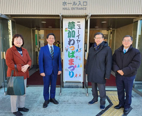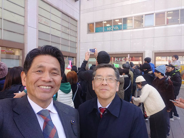 石井公明党常任顧問、蒲生県議団団長、藤原議員と一緒にニューイヤー草加わっぱまつりへ。