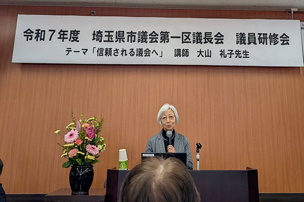 講師は駒澤大学名誉教授、地方制度税制調査会副会長の大山礼子氏。演題は「信頼される議会へ」。