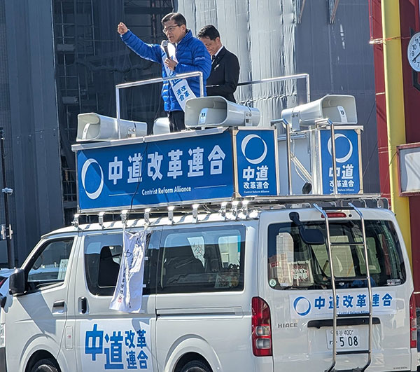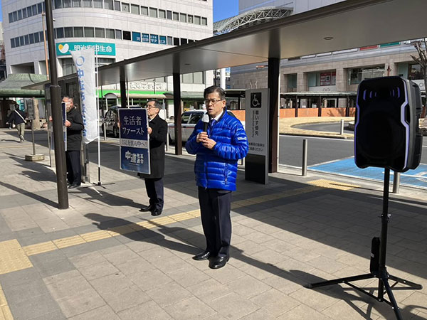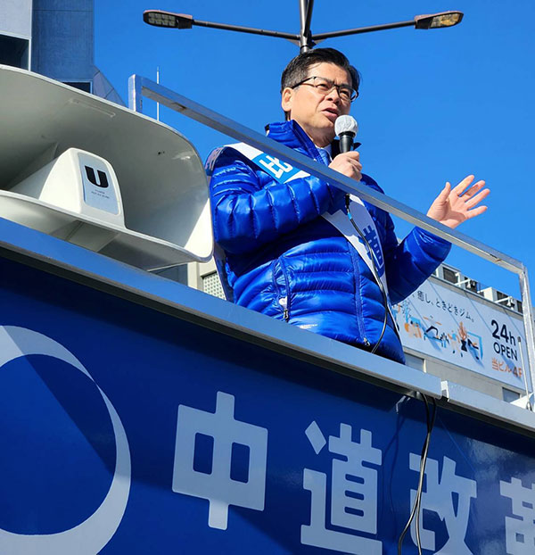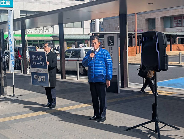 元国土交通大臣中道改革連合比例区北関東ブロック予定候補石井啓一氏をお迎えし、草加駅前にて街頭演説会を開催。