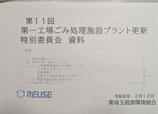 本日、東埼玉資源環境組合議会第一工場プラント更新特別委委員会に出席。特別委員会は始めての出席。