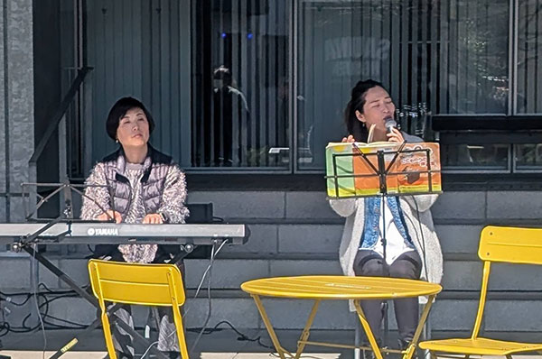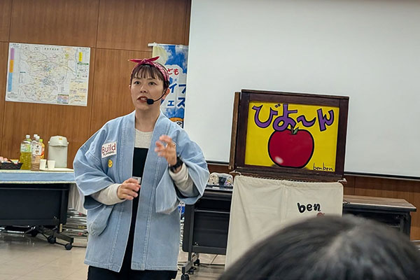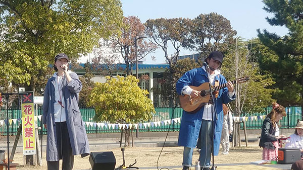 風が強い中でしたが、歌や電子ピアノによる童謡など、おやこ劇場による昔ながらの遊びでこどもたちは、満面えみで遊んでいらっしゃいました。