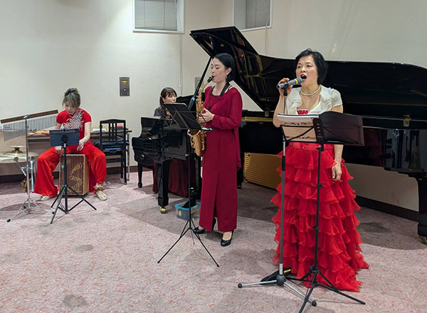 手焼きのせんべい実演も。 最後は、声楽家の河内紀恵さんを中心に、草加市歌を全員で斉唱して終了。