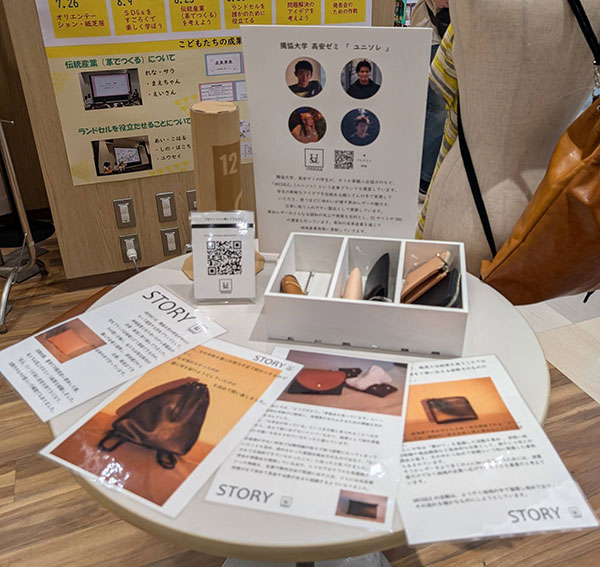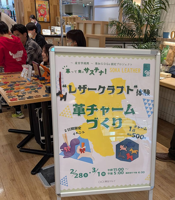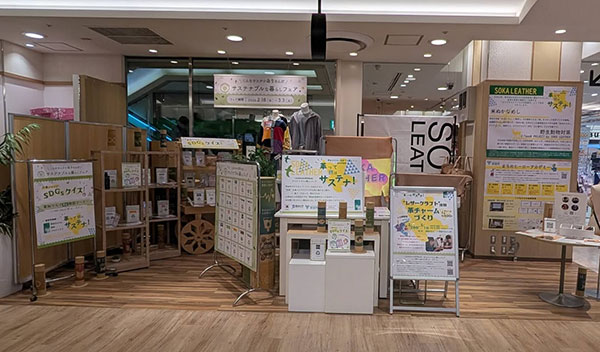 マルイ1階で、皮革をテーマに「サステナブルな暮らしフェア〜こんなサステナブルありなんだ〜」を草加市、草加マルイ、そうか革職人会、獨協大学高安ゼミと連携し開催。