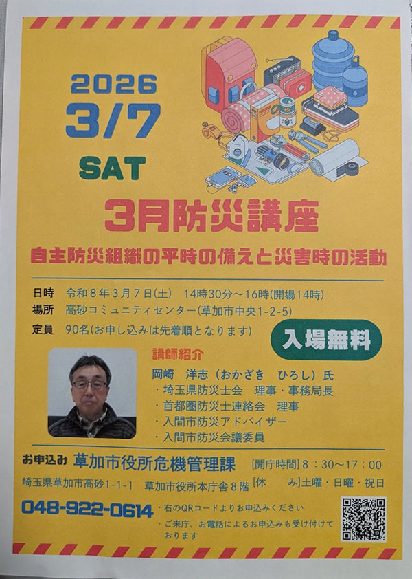 皆様と一緒になって、草加市の防災力アップのために、全力で働いてまいります。