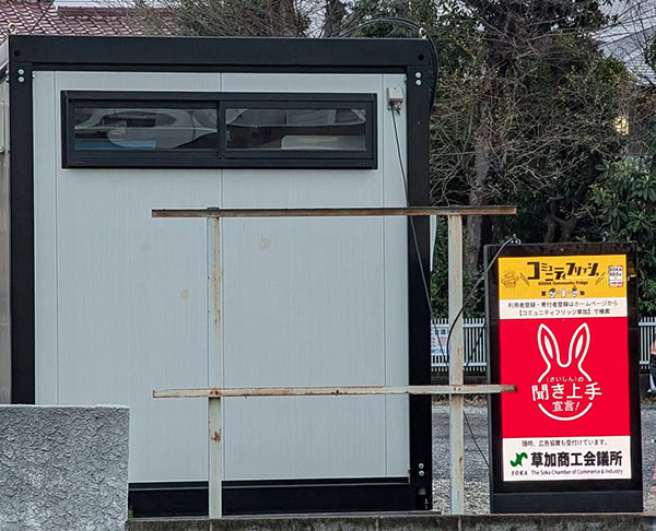 コミュニティフリッジとは、個人や企業から寄付された食料品や日常品を支援を必要とする方方が時間や人目を気にせずに24時間いつでも、受け取れる仕組みのことで、現在、草加商工会議所青年部が中心となって取り組んでいます。