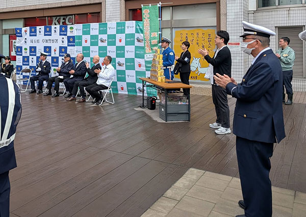 一昨日の4日、草加駅東口 アコスイベント広場にて、春の全国交通安全運動及び特殊詐欺撲滅出発式を開催されました。